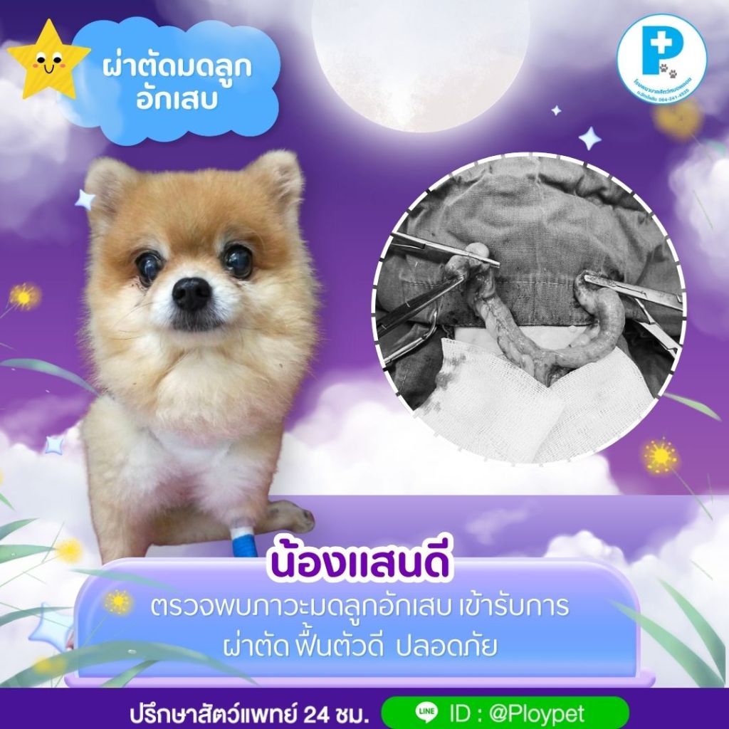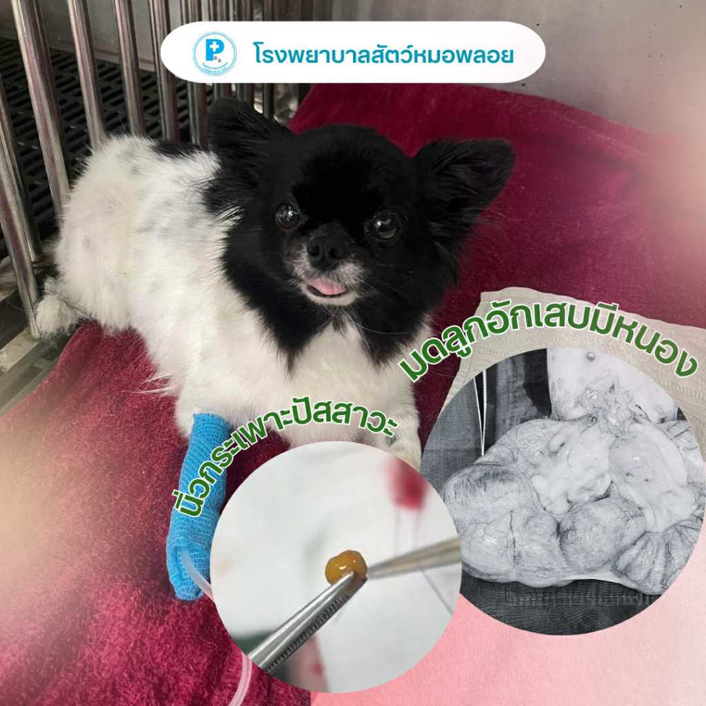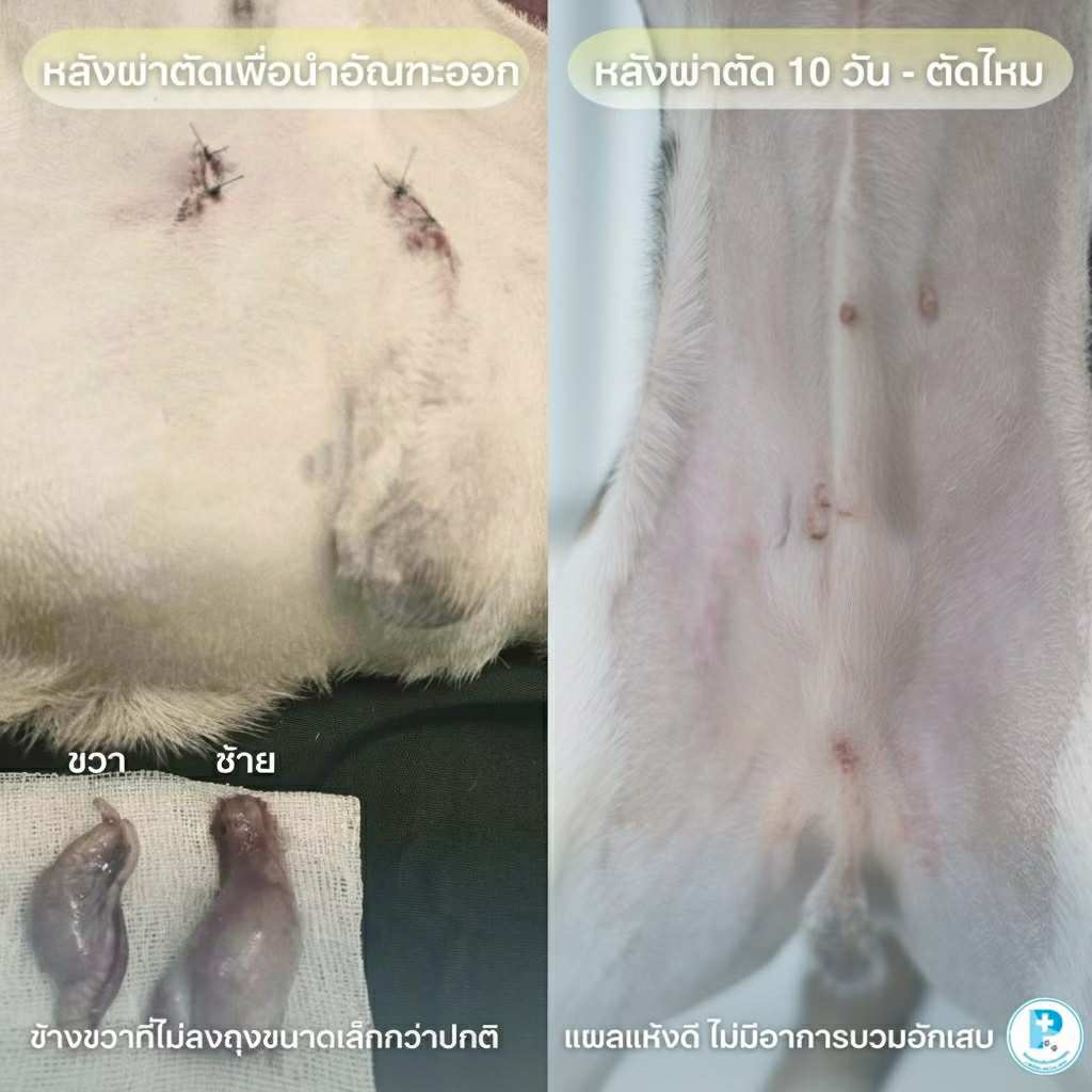 ตัวอย่างเคสจากทางโรงพยาบาล – น้อง โยเกิร์ตสุนัขเพศเมีย อายุค่อนข้างมาก ยังไม่เคยทำหมัน มาด้วยอาการซึม ไม่กินอาหาร ตรวจอัลตราซาวด์พบว่า มดลูกมีการอักเสบและมีน้ำภายในต้องรับการรักษาทันที เพราะหากปล่อยไว้ เสี่ยงติดเชื้อในกระแสเลือด (Septicemia) และเสียชีวิตได้ น้องได้รับการผ่าตัดนำมดลูกที่ติดเชื้อออก (Pyometra) พร้อมควบคุมการติดเชื้อและให้สารน้ำ หลังผ่าตัด เริ่มกลับมากินอาหารได้ อาการดีขึ้นเรื่อย ๆ