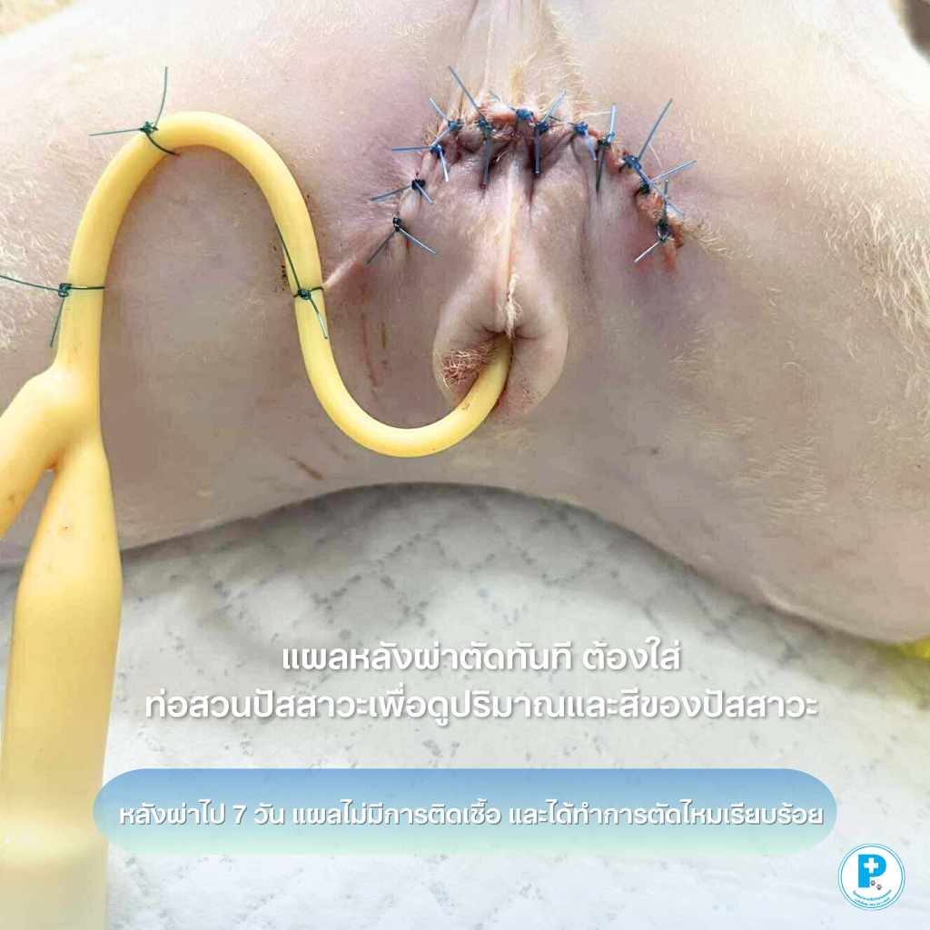 น้องแมวชื่อทองเอก ได้รับการผ่าตัดขยายรูเปิดท่อปัสสาวะใหม่จากสาเหตุ ท่อปัสสาวะตีบไม่สามารถสวนท่อได้จากการเป็น FIC หลังผ่าตัดได้แอดมิทที่โรงพยาบาลเพื่อทำแผล ฉีดยา และสังเกตการปัสสาวะ