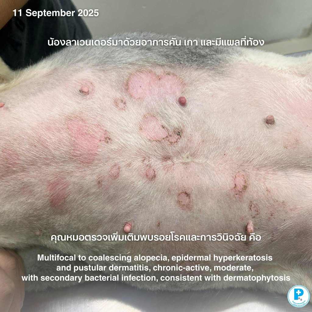 แยกสัตว์ป่วยเพื่อลดการแพร่กระจายหากพบว่าน้องมี ขนร่วง ผิวหนังเป็นวง ผิวแห้ง หรือคัน