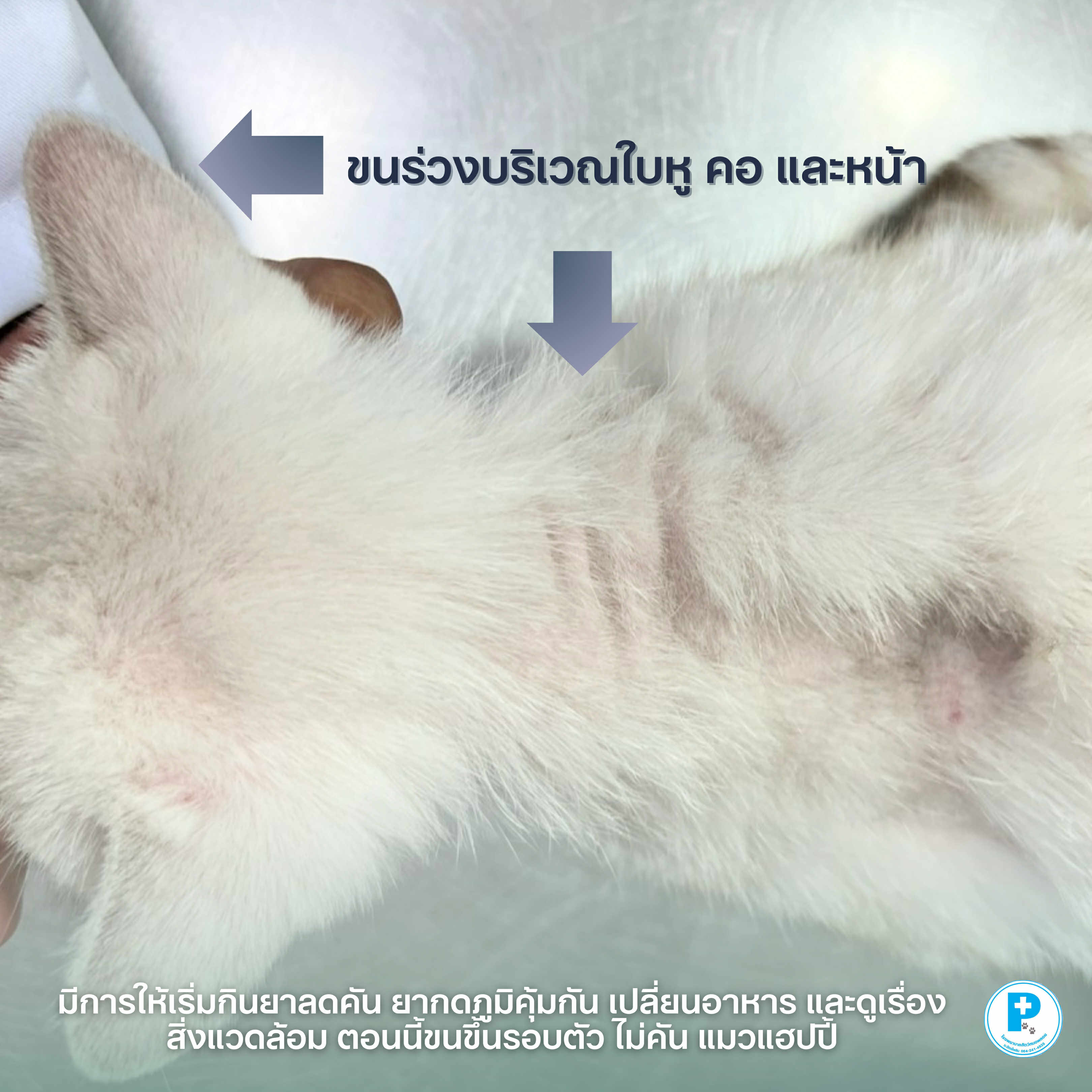 – พาสัตว์ตรวจทันทีถ้ามีขนร่วงเป็นวง คัน หรือเป็นสะเก็ด