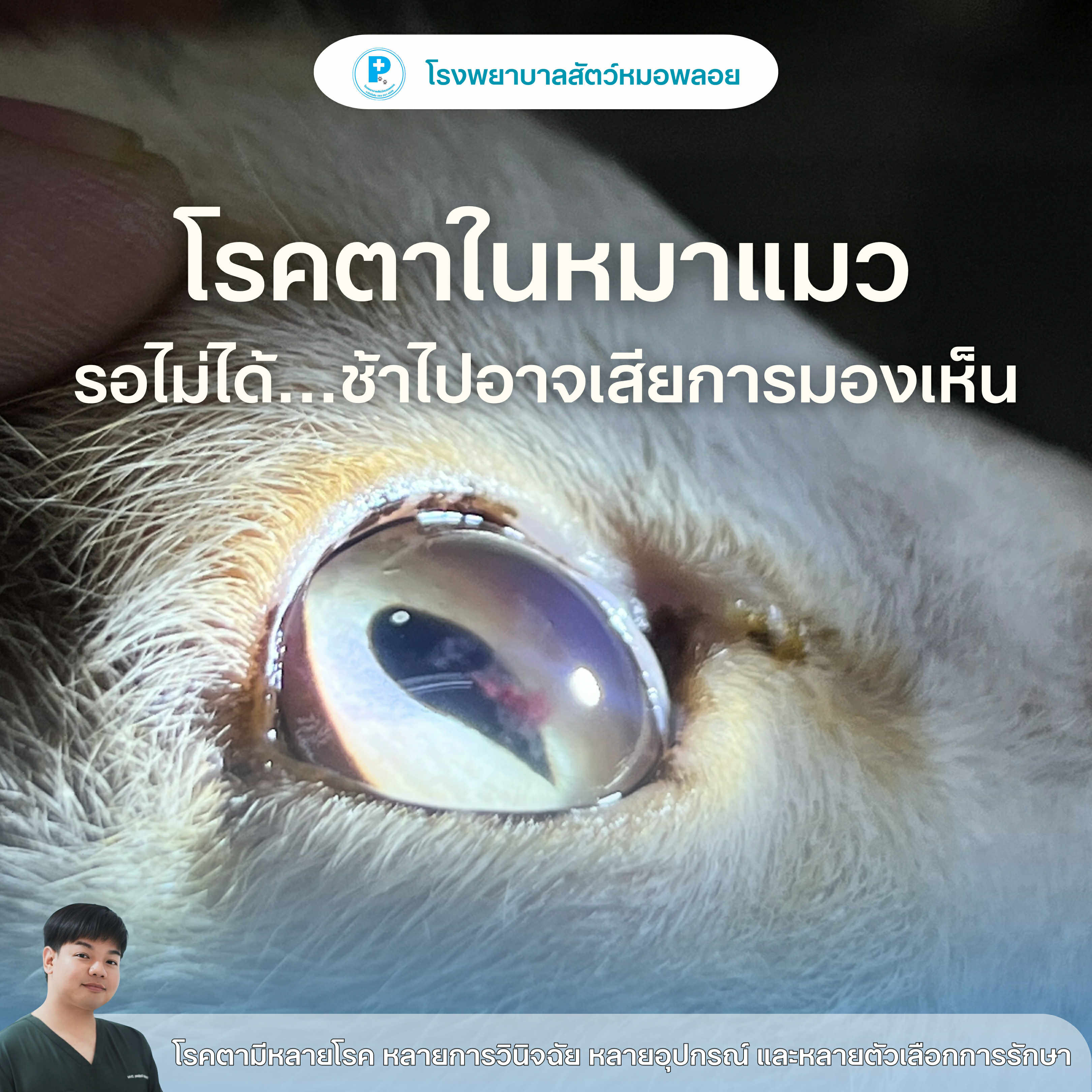 - อาการตาหมาแมว ที่เจ้าของมองเห็นได้จากภายนอก ไม่ต้องรู้ว่าโรคอะไร แค่เห็น “ไม่ปกติ” = ควรพามาตรวจ