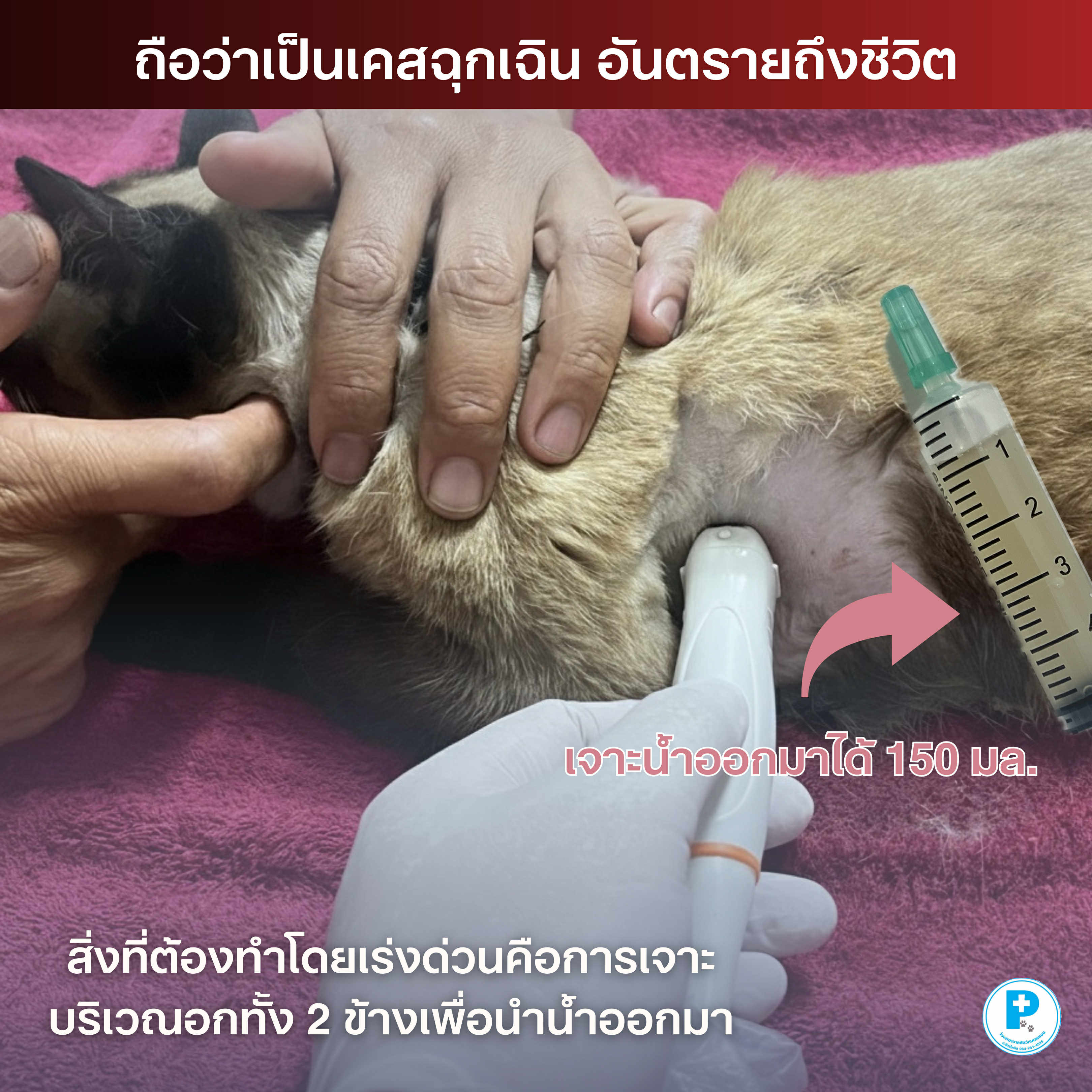 • เจาะน้ำออกได้ 150 mL (ถือว่าปริมาณมากในแมว)