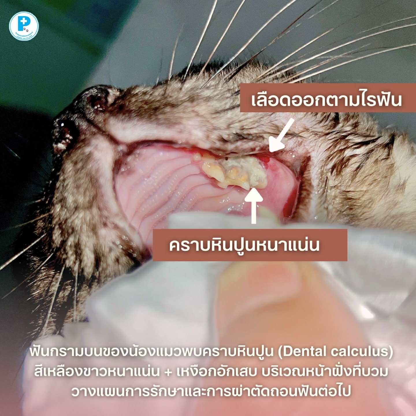 เคสนี้น้องแมวมี คราบหินปูนหนาแน่น (Dental calculus)