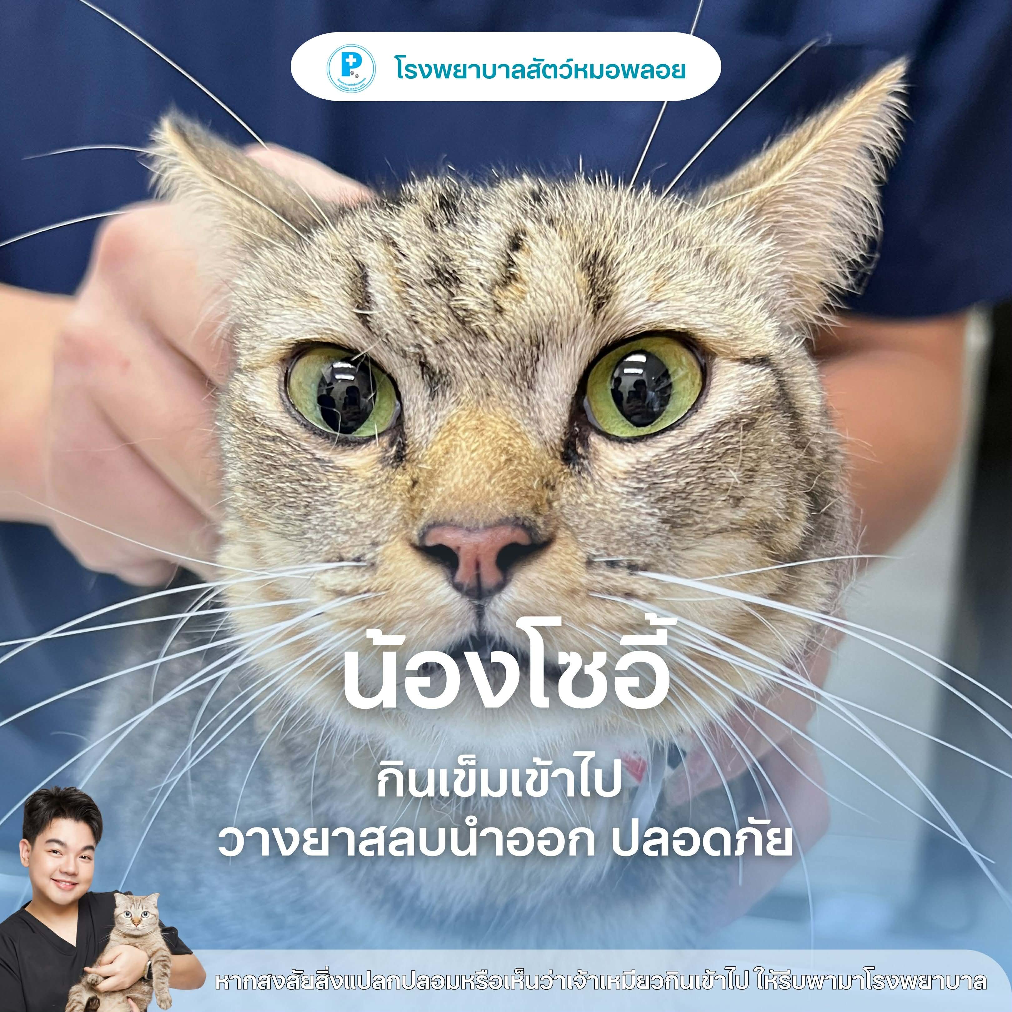 คำแนะนำจากคุณหมอแมวเป็นสัตว์ที่ชอบเล่นของที่มีลักษณะเป็นเส้นหรือของชิ้นเล็กๆ หากทาสแมวสังเกตเห็นอาการผิดปกติ เช่น ขย้อนเหมือนมีอะไรติดคอ หรือเห็นคาตาว่าน้องกินสิ่งแปลกปลอมเข้าไป “ห้ามดึงเองเด็ดขาด” และควรรีบพาน้องมาโรงพยาบาลทันทีเพื่อความปลอดภัยครับ