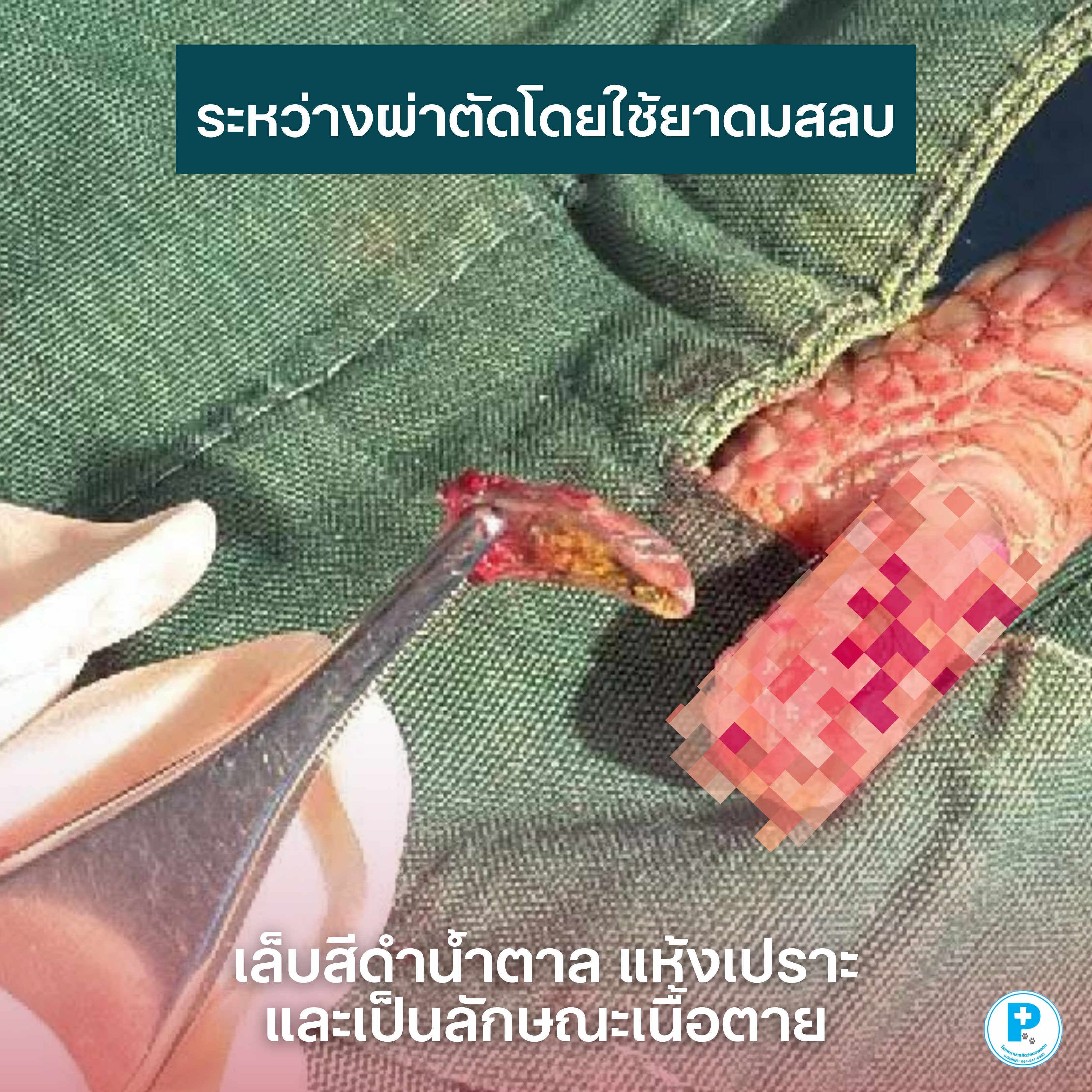 ภายใต้ยาดมสลบและเทคนิคปลอดเชื้อ เพื่อตัดเนื้อเยื่อที่ตายออกทั้งหมด ลดความเจ็บปวด และป้องกันการลุกลามของการติดเชื้อ