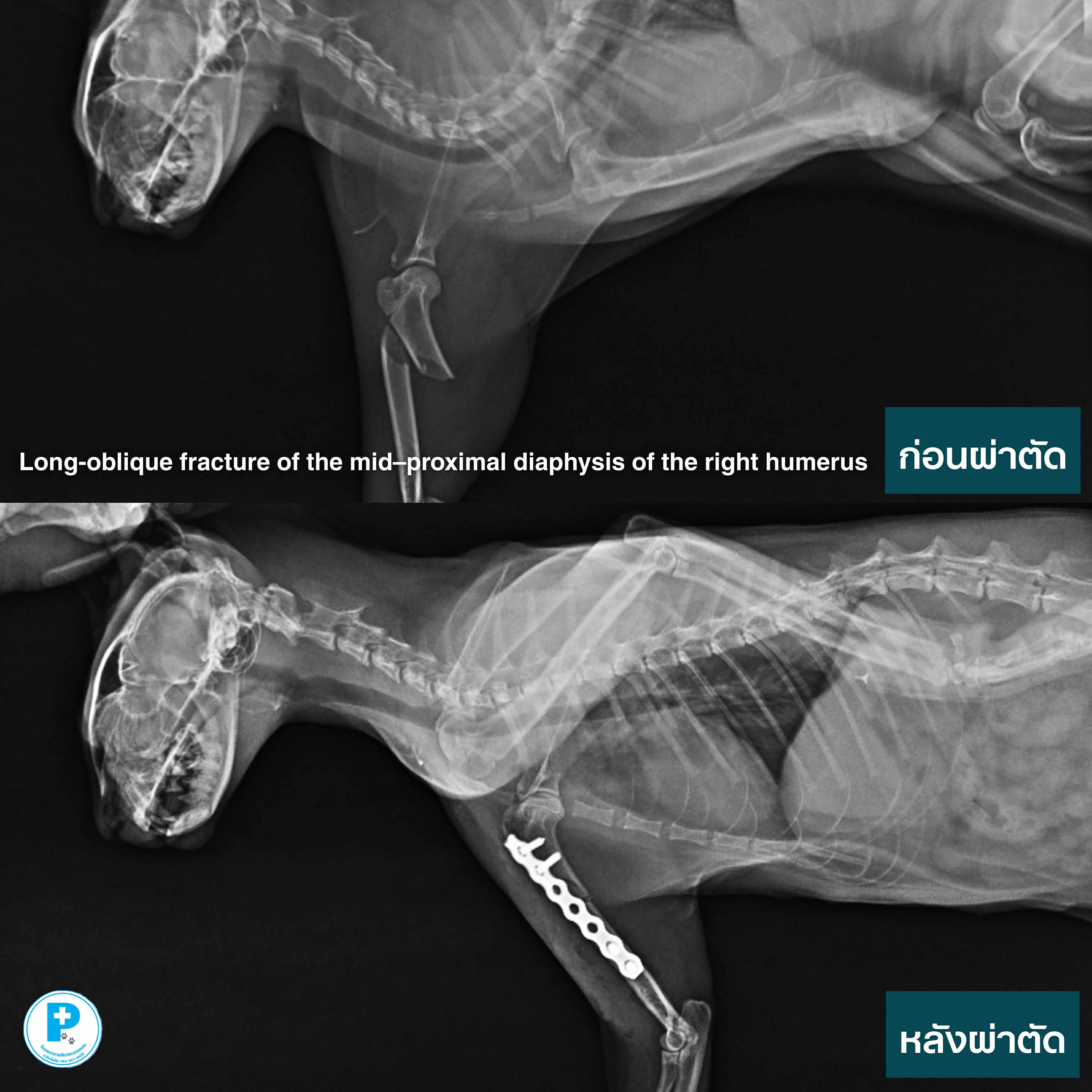 น้องซีต้าประสบอุบัติเหตุกระดูกต้นขาหน้าซ้ายหักแบบ Long-oblique fracture of the mid–proximal diaphysis of the left humerus