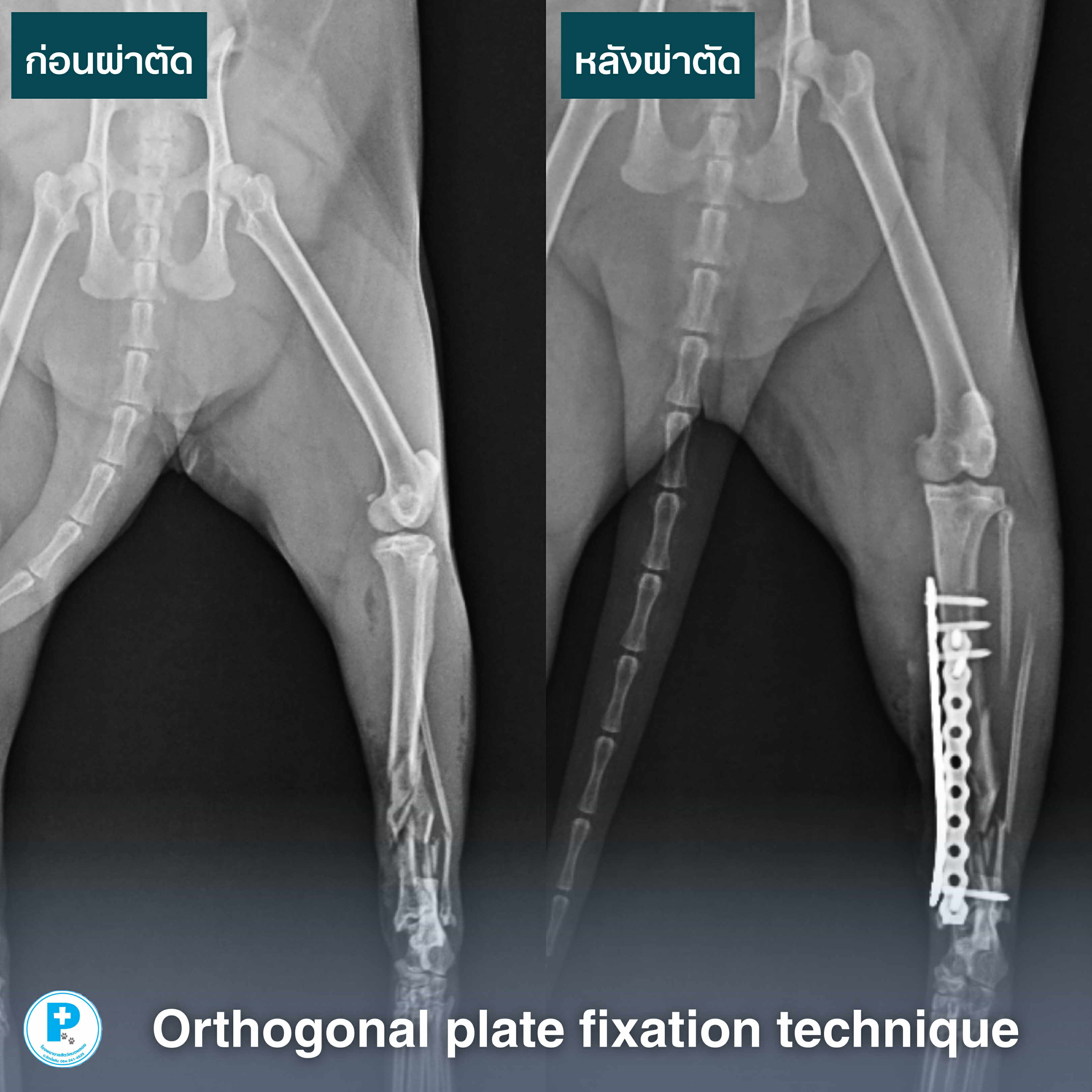 ภาพเปรียบเทียบ ก่อน–หลังผ่าตัด แสดงให้เห็นการจัดแนวกระดูกที่ดีขึ้นอย่างชัดเจน ขณะนี้น้องอยู่ในช่วงพักฟื้นและติดตามอาการอย่างใกล้ชิด