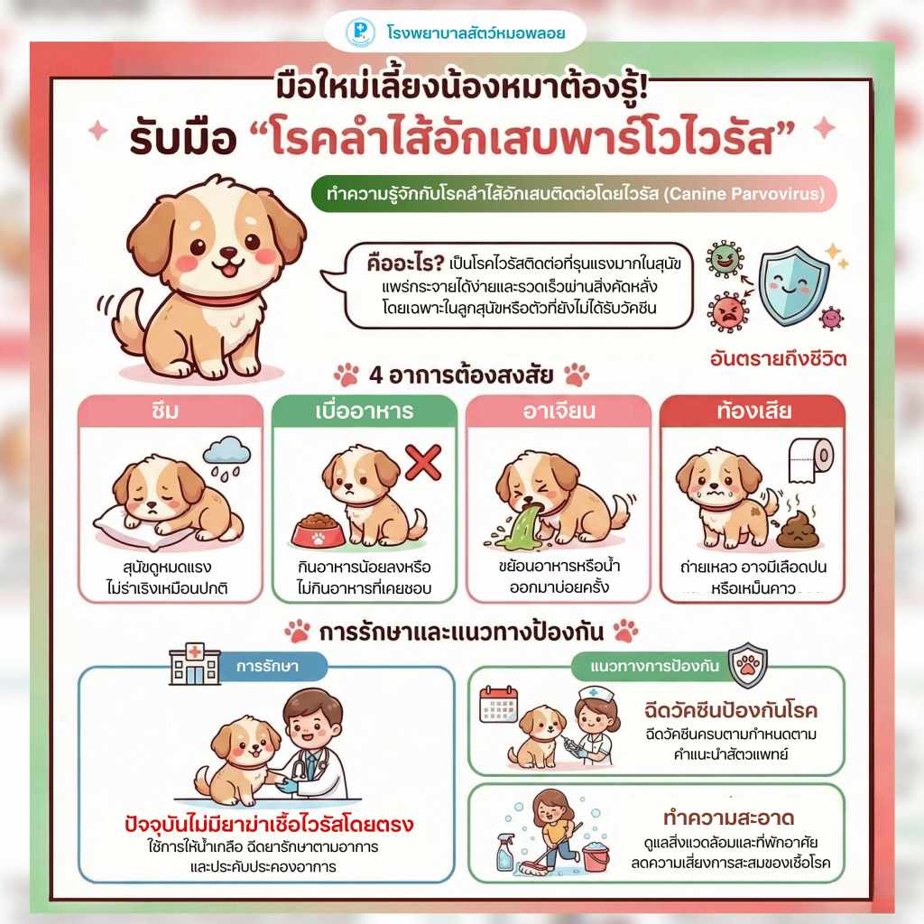 โรคลำไส้อักเสบจากพาร์โวไวรัส (Canine Parvovirus) เป็นโรคไวรัสที่รุนแรงและแพร่กระจายได้ง่าย โดยเฉพาะใน ลูกสุนัขหรือสุนัขที่ยังไม่ได้รับวัคซีนครบ