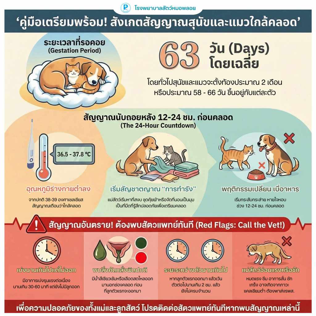 ช่วง 12–24 ชั่วโมงก่อนคลอด มักจะมีสัญญาณ เช่น