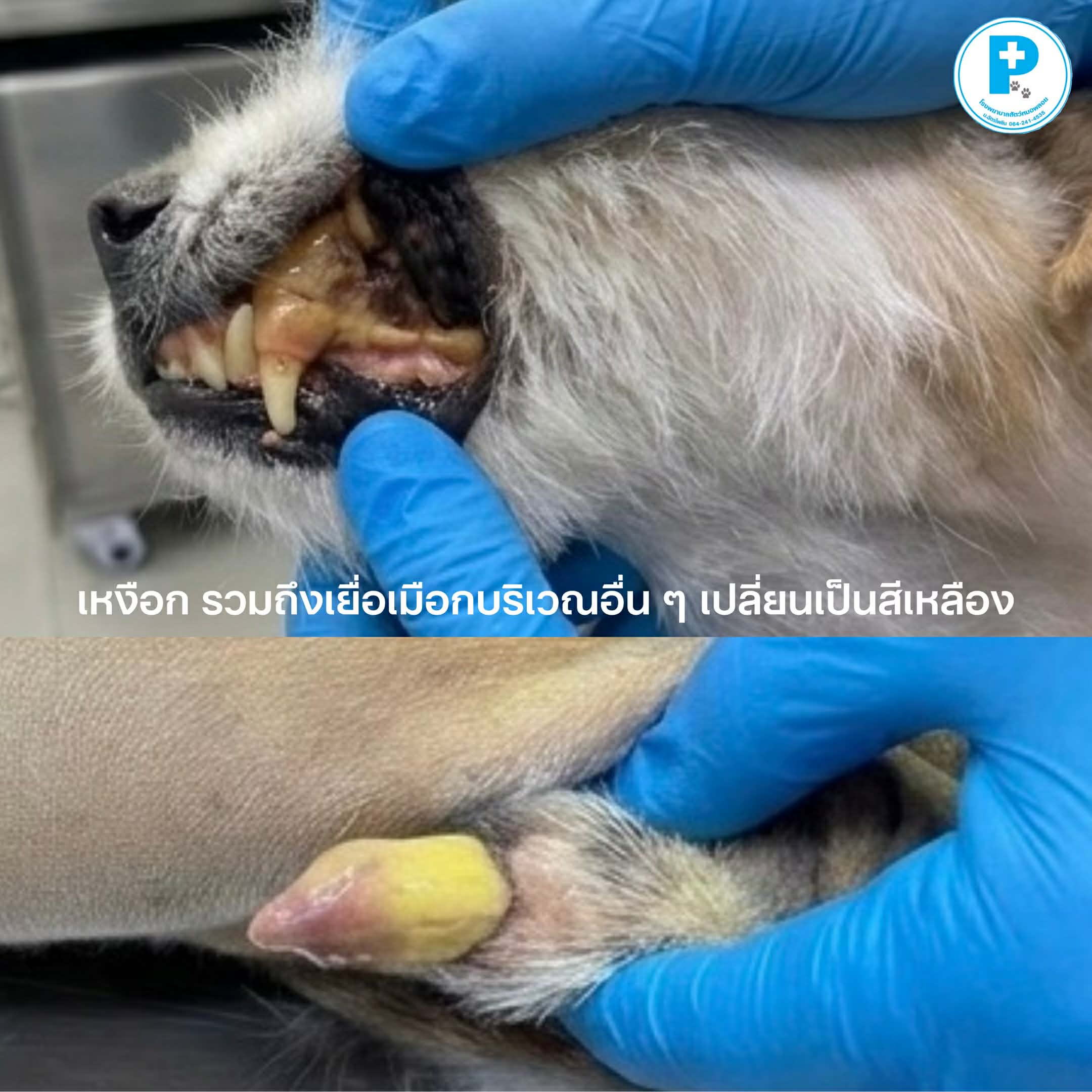 • เหงือก ตาขาว หรือผิวหนังมีสีเหลือง