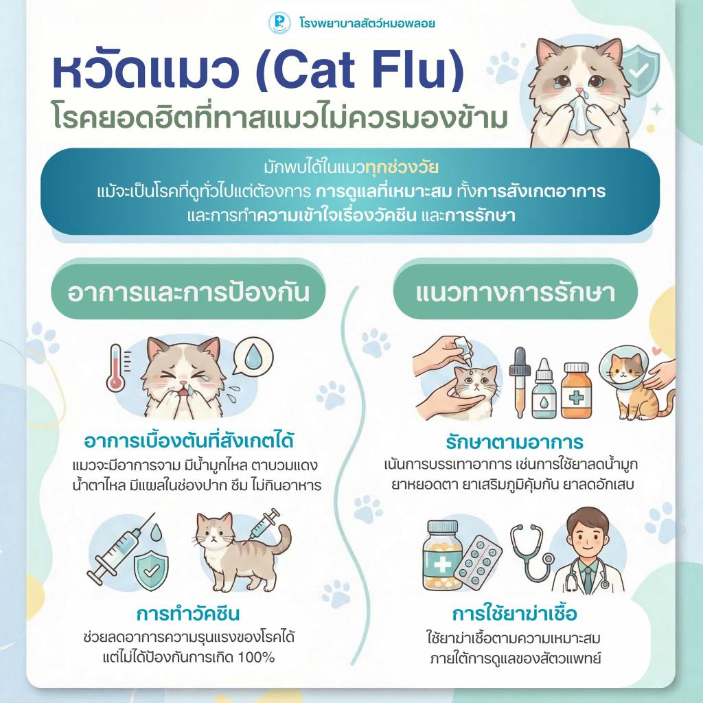 หากแมวเริ่มมีอาการจาม น้ำมูก หรือซึม ควรพามาตรวจเพื่อรับการรักษาอย่างเหมาะสม