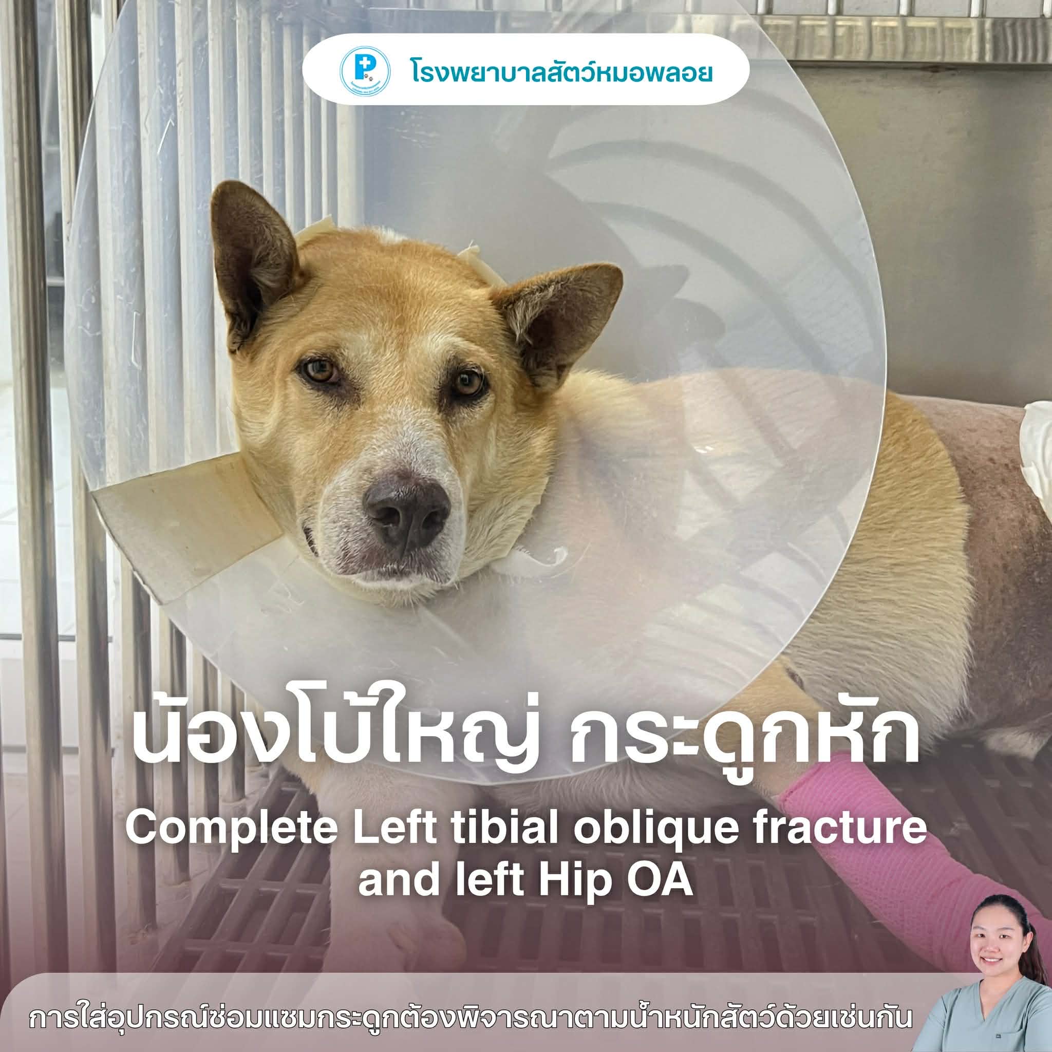 เคสนี้เป็นตัวอย่างที่ต้อง “เลือกวิธีผ่าตัดให้เหมาะกับขนาดและน้ำหนักสัตว์” เพื่อให้ผลลัพธ์ออกมาดีที่สุด ตอนนี้น้องพักฟื้นดีขึ้นเรื่อย ๆ แต่ยังต้องควบคุมการเคลื่อนไหว + ทำกายภาพต่อเนื่องครับ