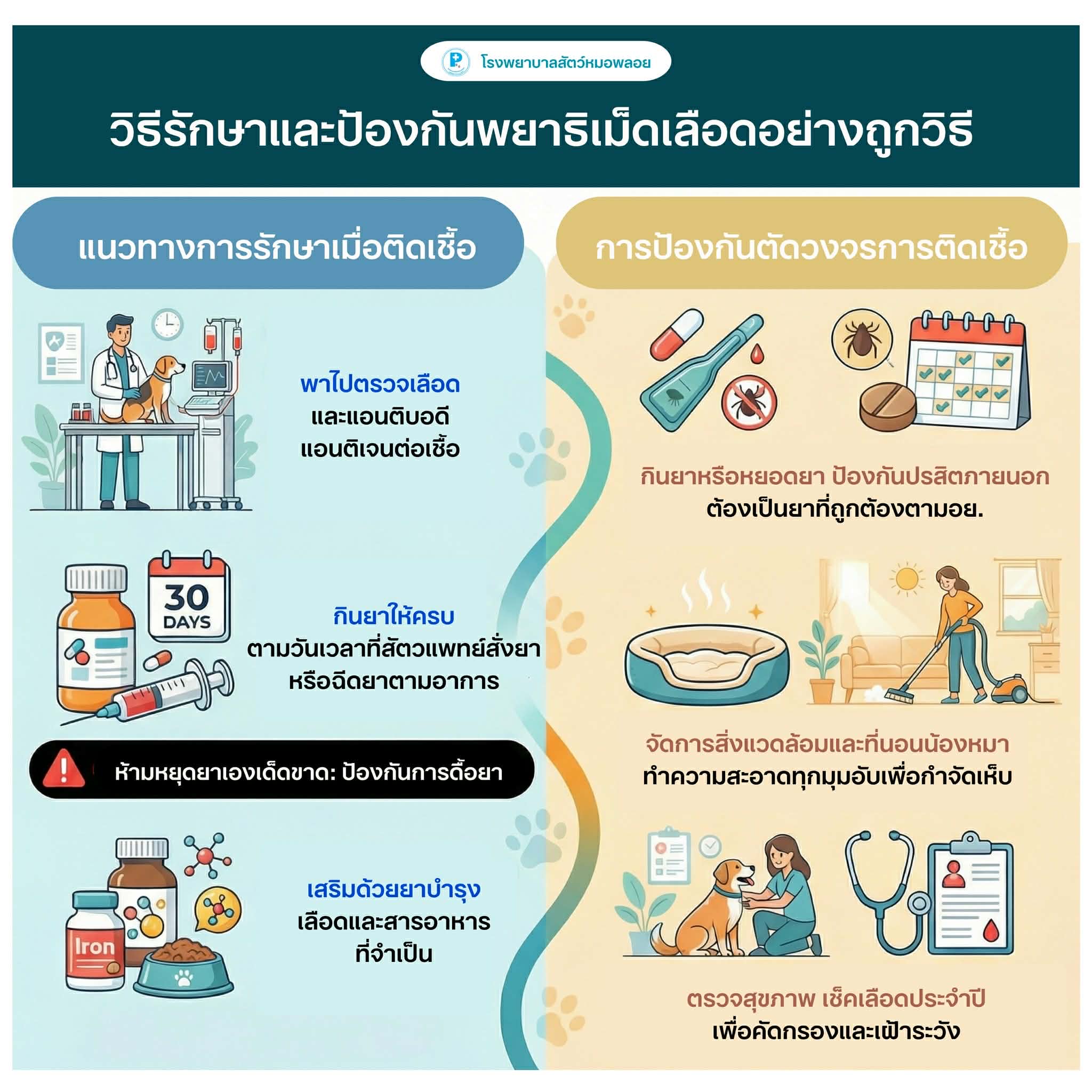 • ใช้ยาป้องกันเห็บอย่างสม่ำเสมอ