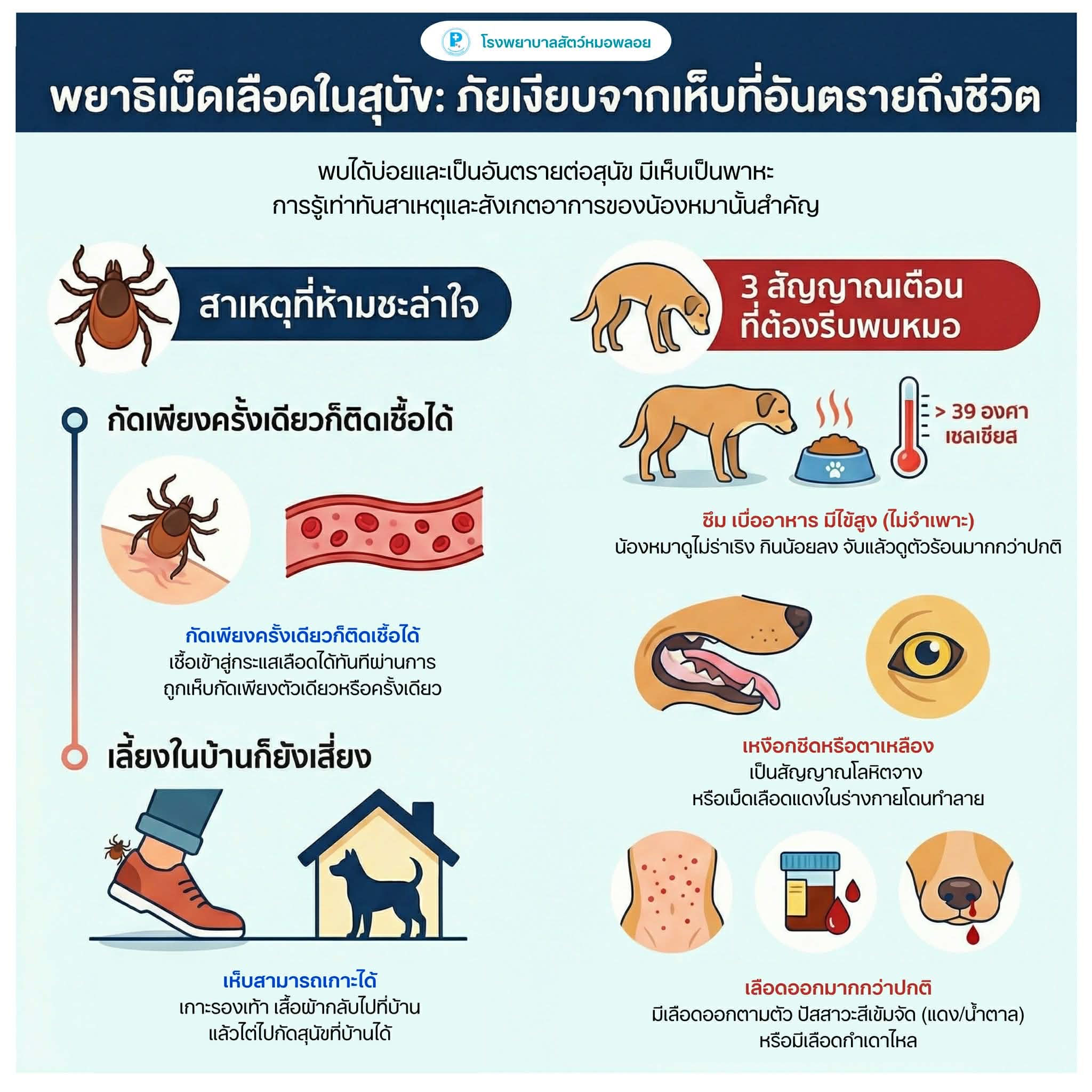 หลายคนคิดว่าน้องหมาเลี้ยงในบ้านจะปลอดภัย… แต่จริง ๆ แล้ว “เห็บตัวเดียว” ก็ทำให้ติดเชื้อได้ ![]()