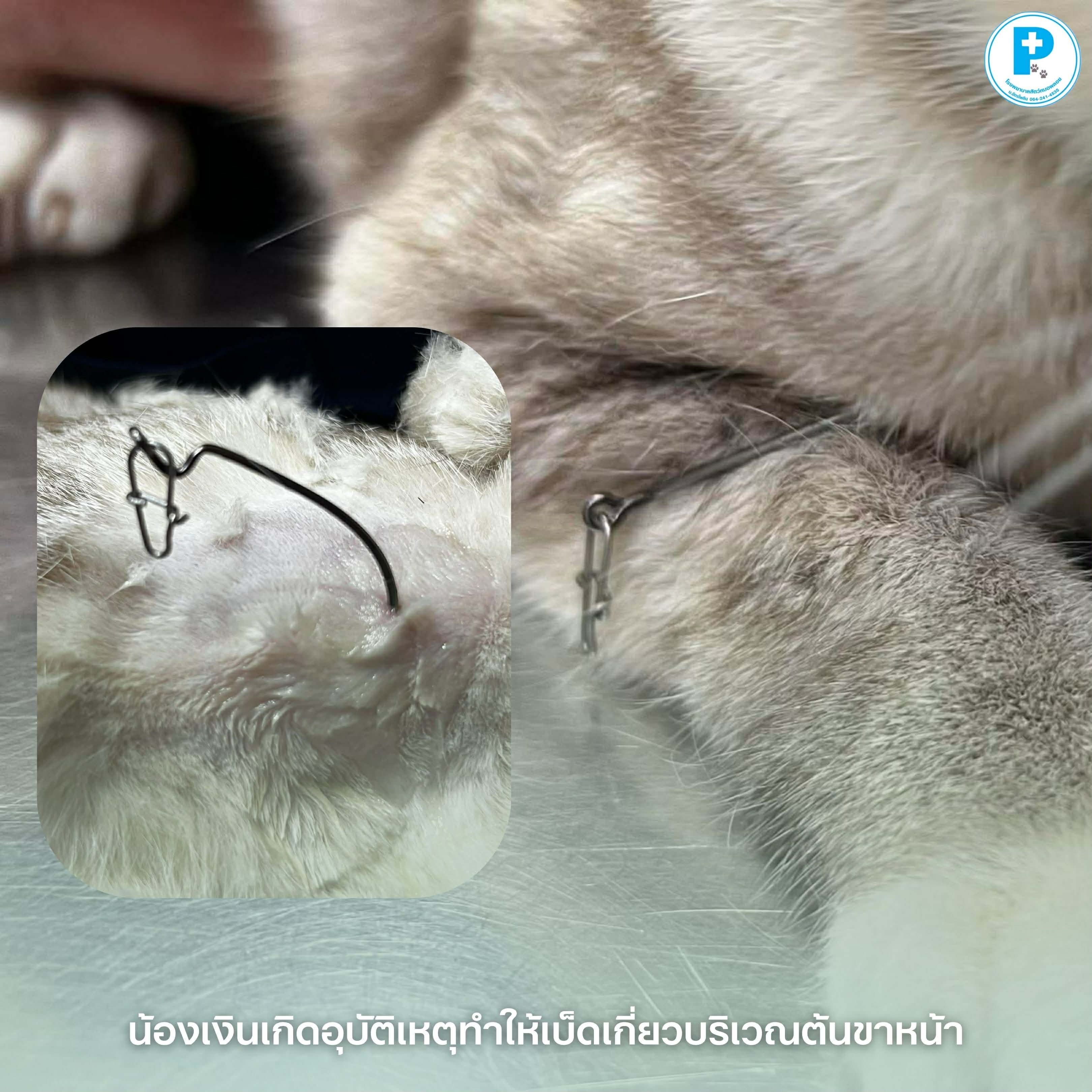 วันนี้มีเคสที่อยากนำมาแชร์ให้กับทาสแมวทุกท่านครับ กับกรณีของ “น้องเงิน” ที่เผลอไปซนจนโดน ตัวเบ็ดตกปลาเกี่ยวเข้าที่บริเวณต้นขาหน้า