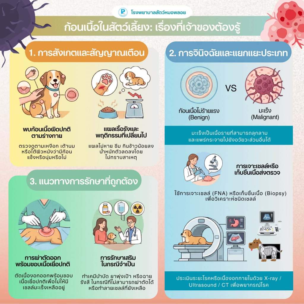 อย่ารอให้ก้อนโตจนสายเกินไป เพราะการตรวจเจอตั้งแต่ระยะแรก เพิ่มโอกาสให้น้องกลับมาวิ่งเล่นได้เหมือนเดิมครับ ![]()