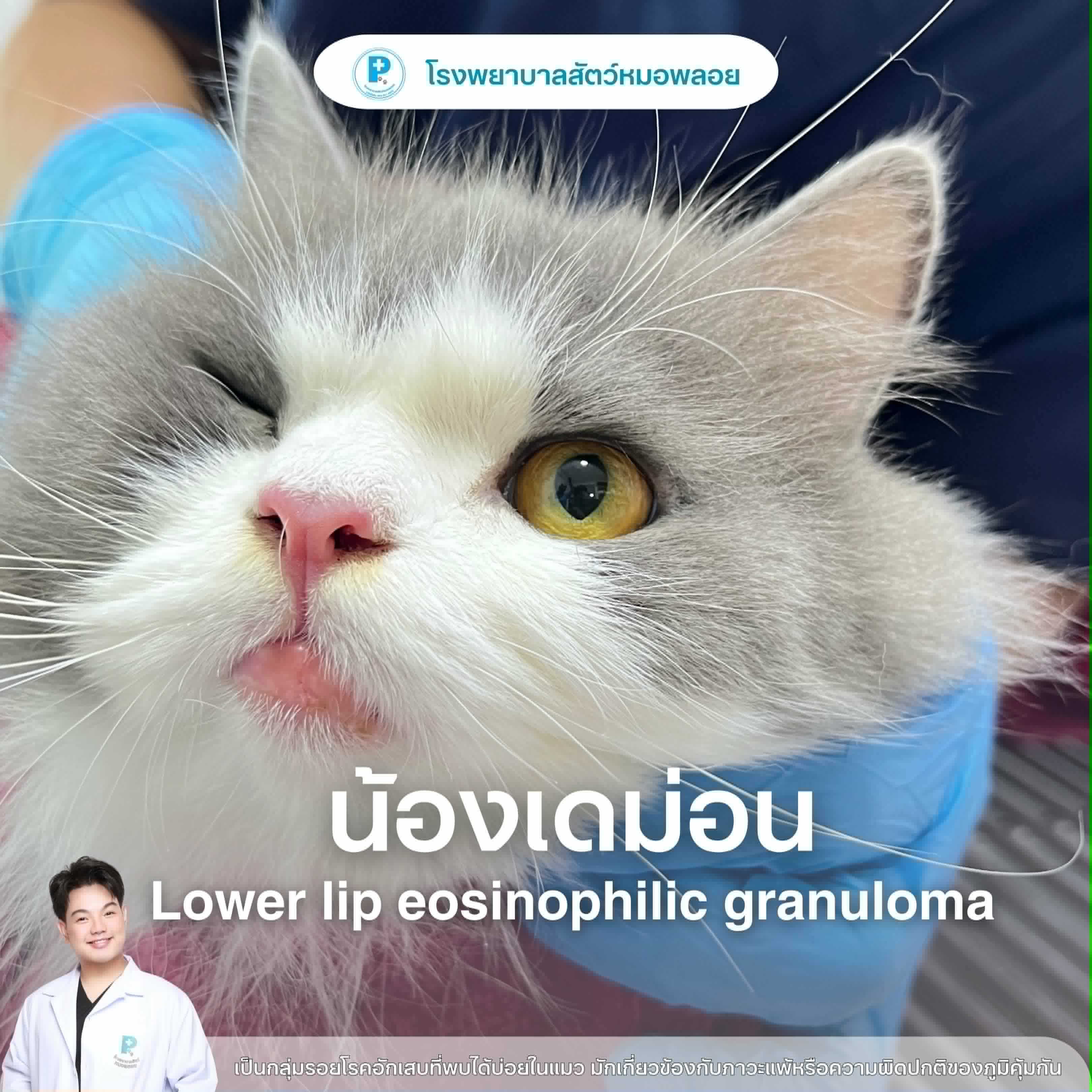วันนี้มาทำความรู้จักกับ น้องเดม่อน ที่มาด้วยอาการริมฝีปากล่างบวมแดงอย่างเห็นได้ชัด ซึ่งเคสนี้คุณหมอวินิจฉัยแล้วว่าเป็นกลุ่มอาการ Eosinophilic Granuloma Complex (EGC) ครับ